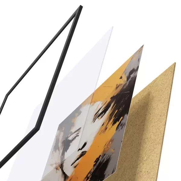 El póster consta de marco, plexiglás, imagen impresa y soporte de aglomerado. El póster puede colgarse inmediatamente en la pared gracias a los soportes de la parte posterior.