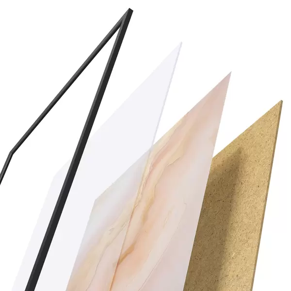 El póster consta de marco, plexiglás, imagen impresa y soporte de aglomerado. El póster puede colgarse inmediatamente en la pared gracias a los soportes de la parte posterior.