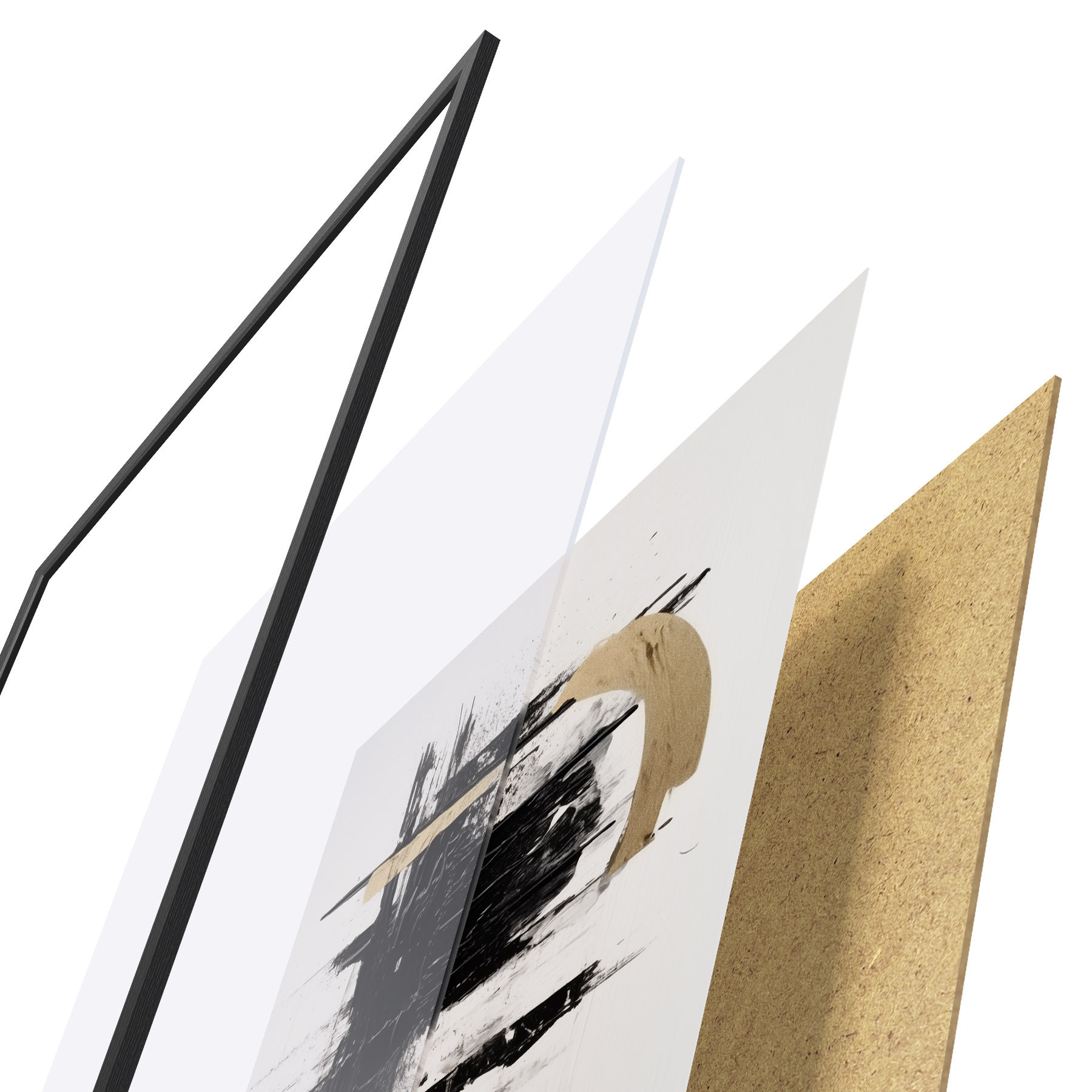 El póster consta de marco, plexiglás, imagen impresa y soporte de aglomerado. El póster puede colgarse inmediatamente en la pared gracias a los soportes de la parte posterior.