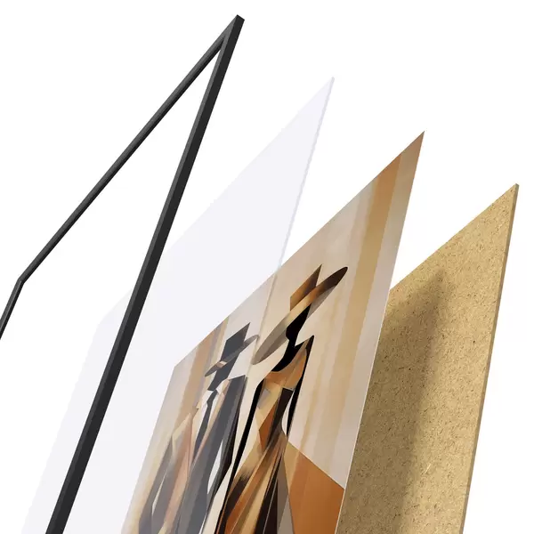 El póster consta de marco, plexiglás, imagen impresa y soporte de aglomerado. El póster puede colgarse inmediatamente en la pared gracias a los soportes de la parte posterior.