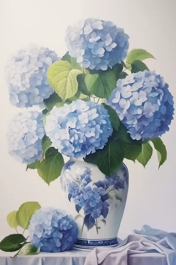 Poster Hortensias en jarrón Nr f47360