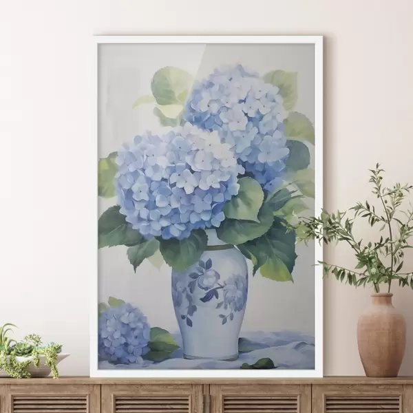 Poster Hortensias en jarrón Nr f47361