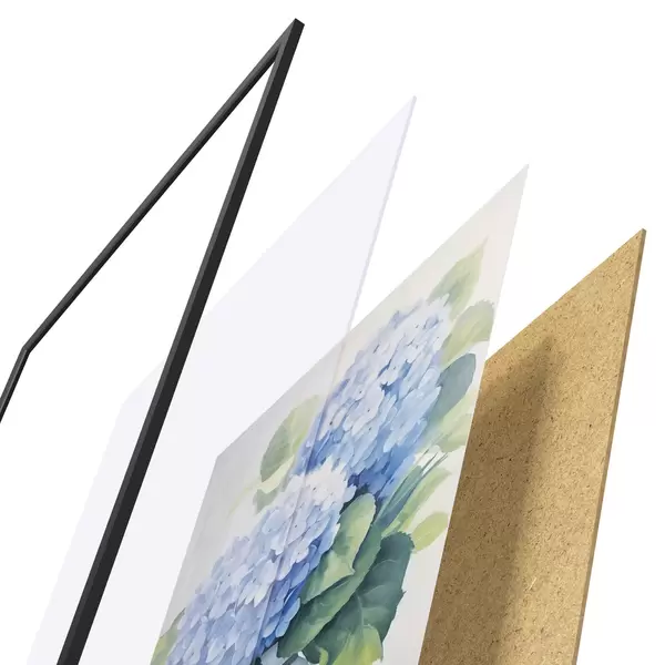 El póster consta de marco, plexiglás, imagen impresa y soporte de aglomerado. El póster puede colgarse inmediatamente en la pared gracias a los soportes de la parte posterior.