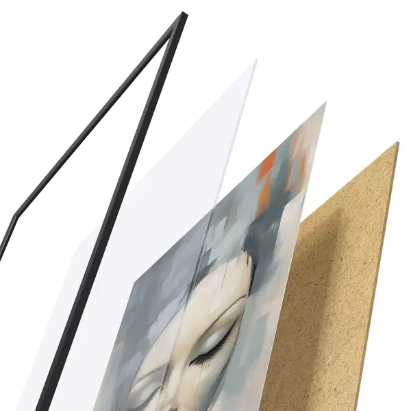 El póster consta de marco, plexiglás, imagen impresa y soporte de aglomerado. El póster puede colgarse inmediatamente en la pared gracias a los soportes de la parte posterior.