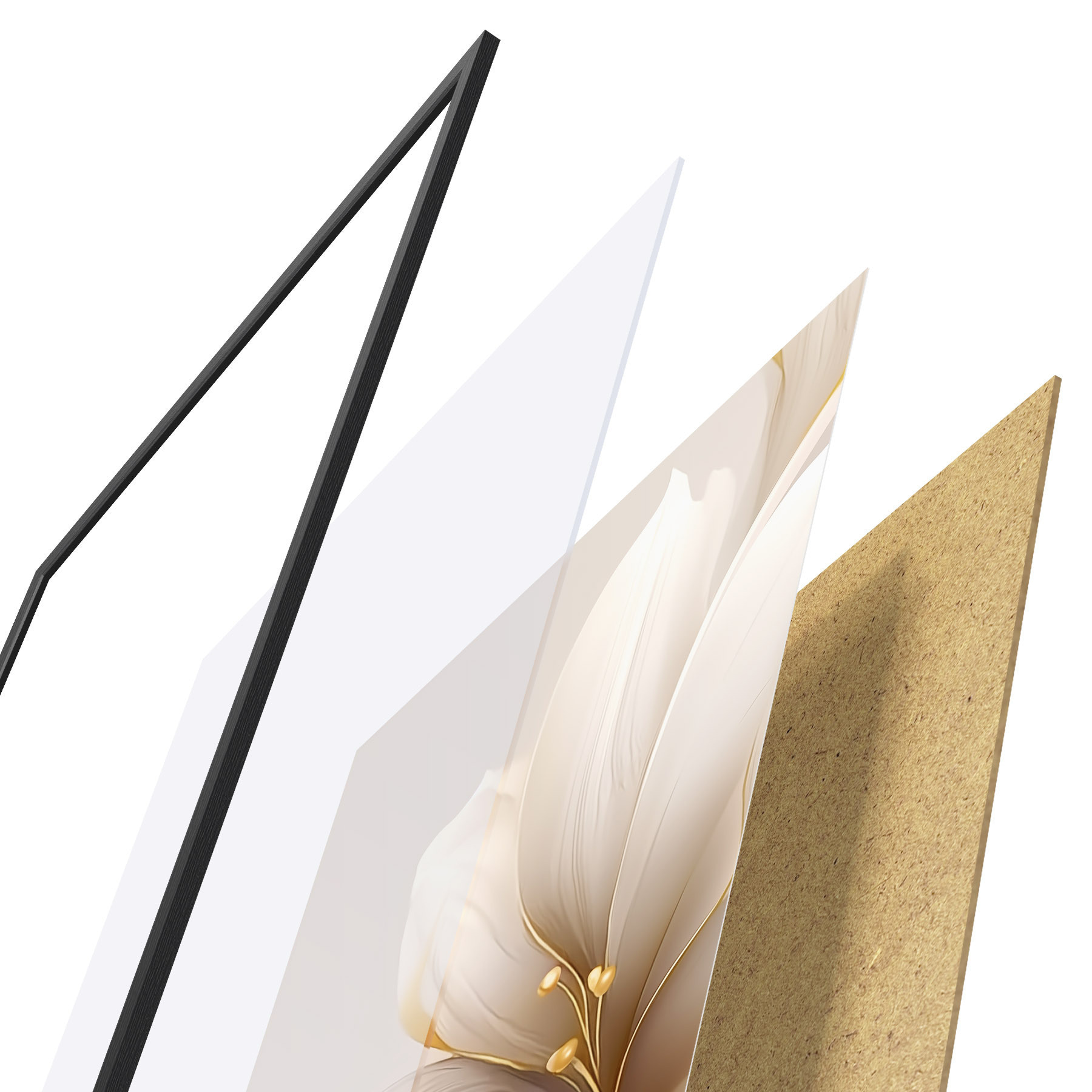 El póster consta de marco, plexiglás, imagen impresa y soporte de aglomerado. El póster puede colgarse inmediatamente en la pared gracias a los soportes de la parte posterior.