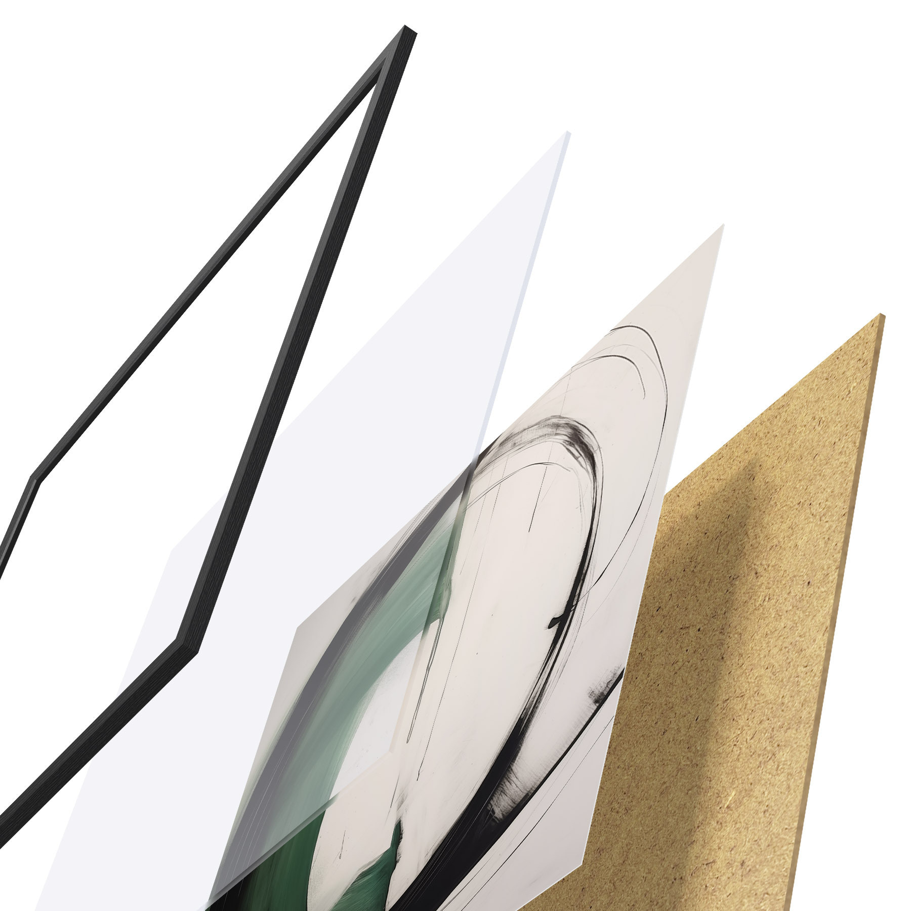 El póster consta de marco, plexiglás, imagen impresa y soporte de aglomerado. El póster puede colgarse inmediatamente en la pared gracias a los soportes de la parte posterior.