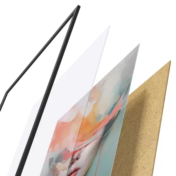 El póster consta de marco, plexiglás, imagen impresa y soporte de aglomerado. El póster puede colgarse inmediatamente en la pared gracias a los soportes de la parte posterior.