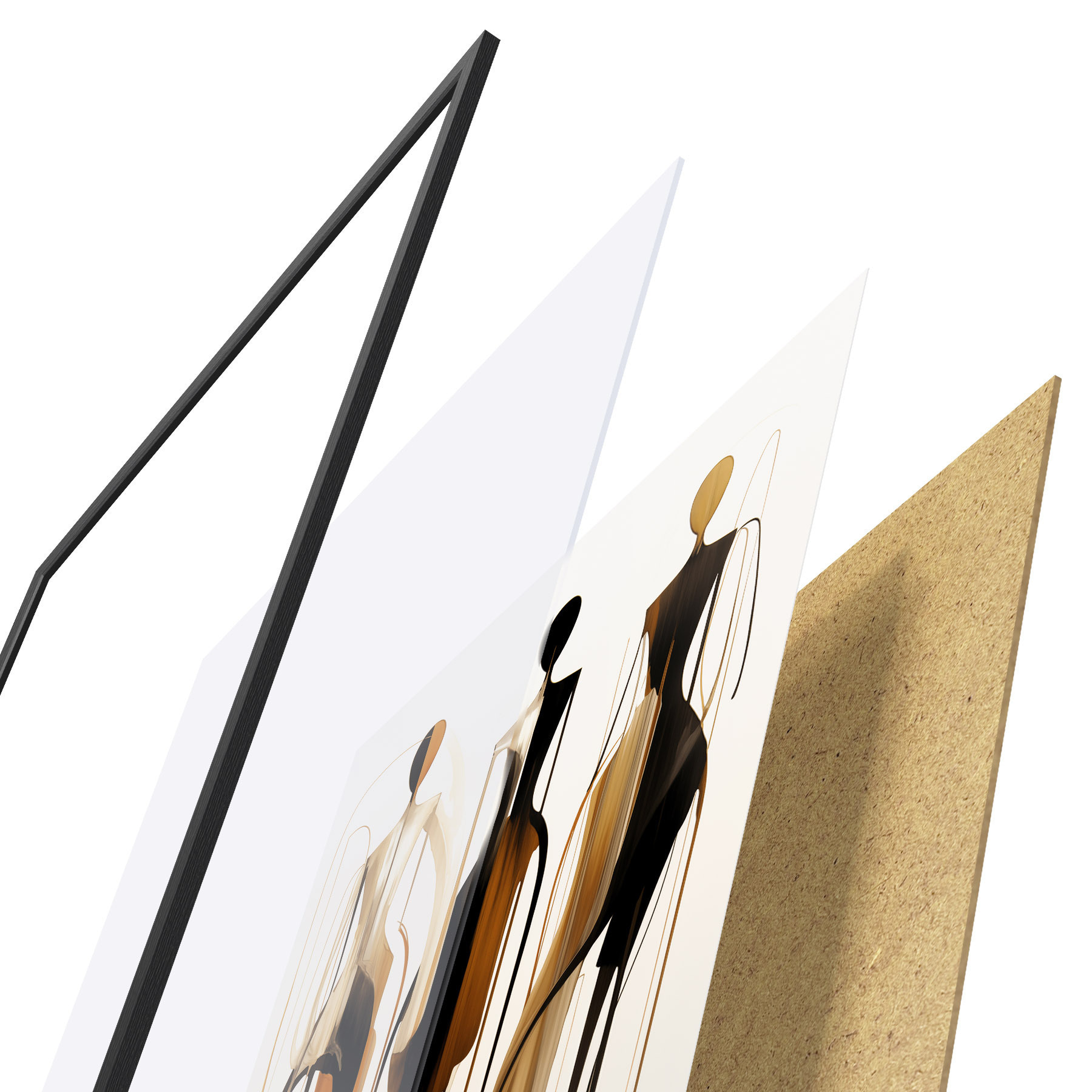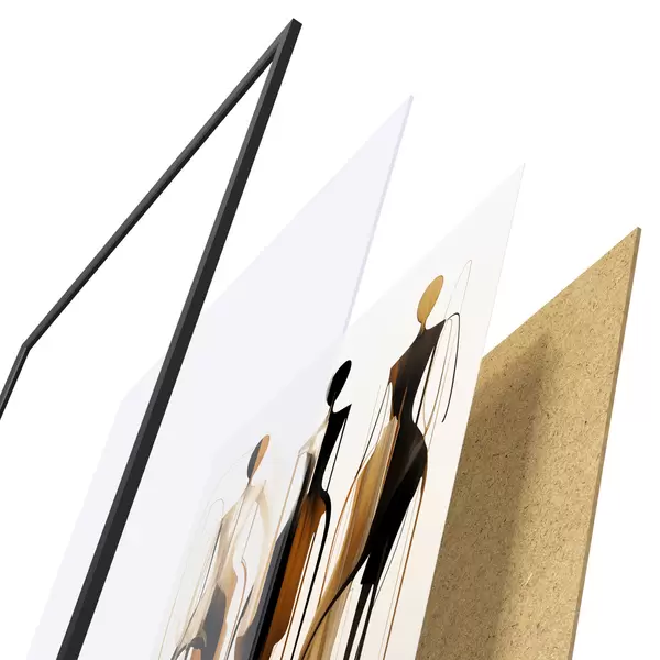 El póster consta de marco, plexiglás, imagen impresa y soporte de aglomerado. El póster puede colgarse inmediatamente en la pared gracias a los soportes de la parte posterior.