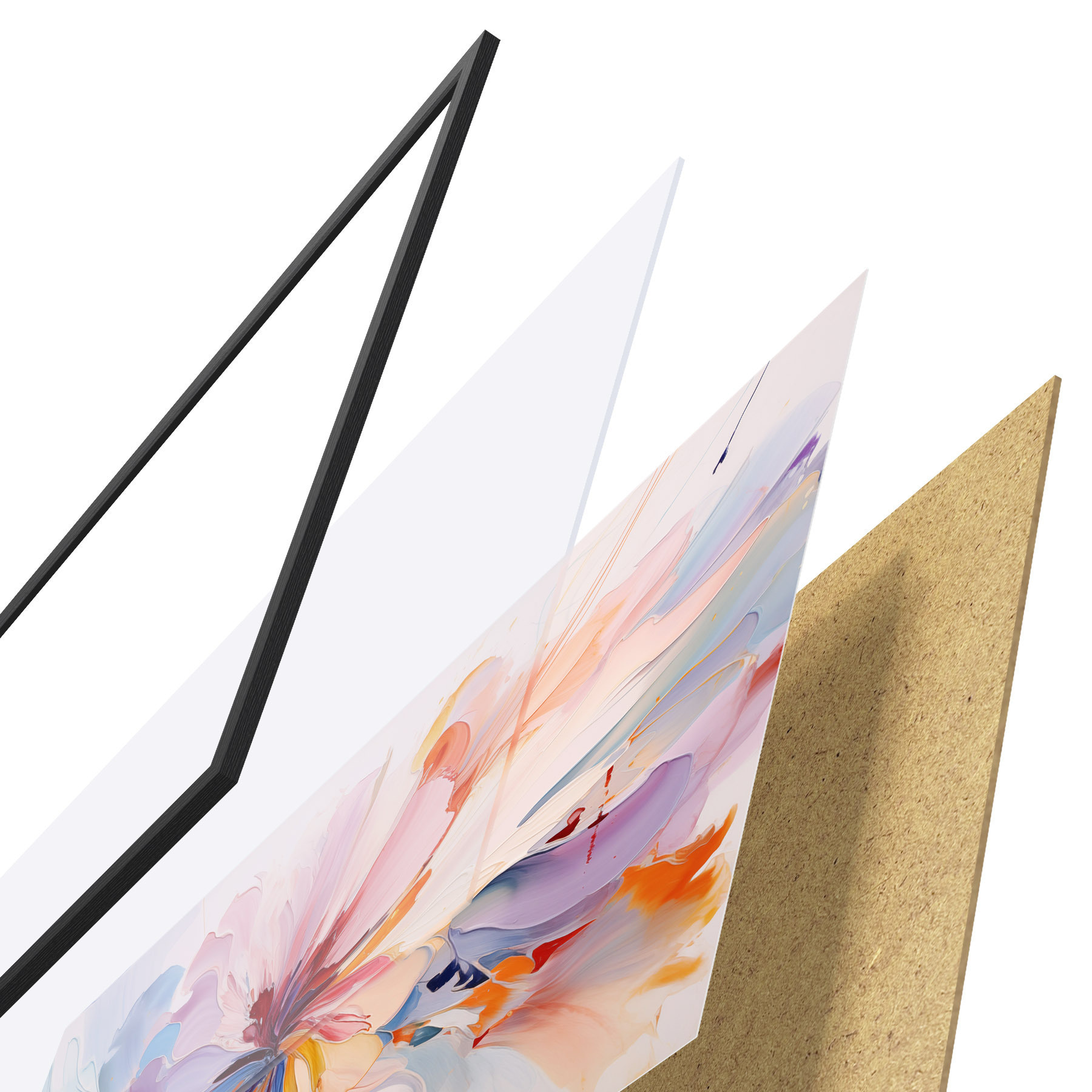 El póster consta de marco, plexiglás, imagen impresa y soporte de aglomerado. El póster puede colgarse inmediatamente en la pared gracias a los soportes de la parte posterior.