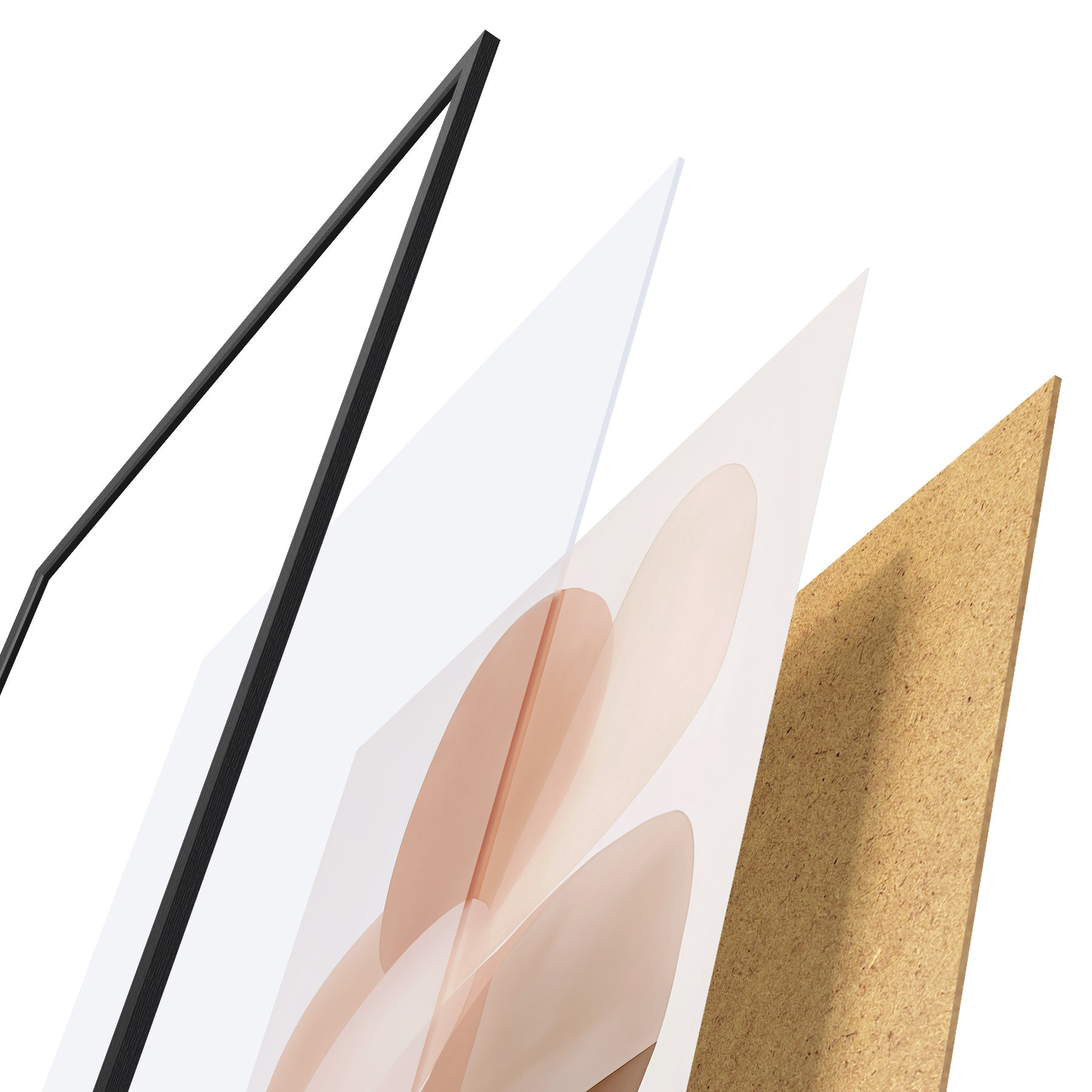 El póster consta de marco, plexiglás, imagen impresa y soporte de aglomerado. El póster puede colgarse inmediatamente en la pared gracias a los soportes de la parte posterior.