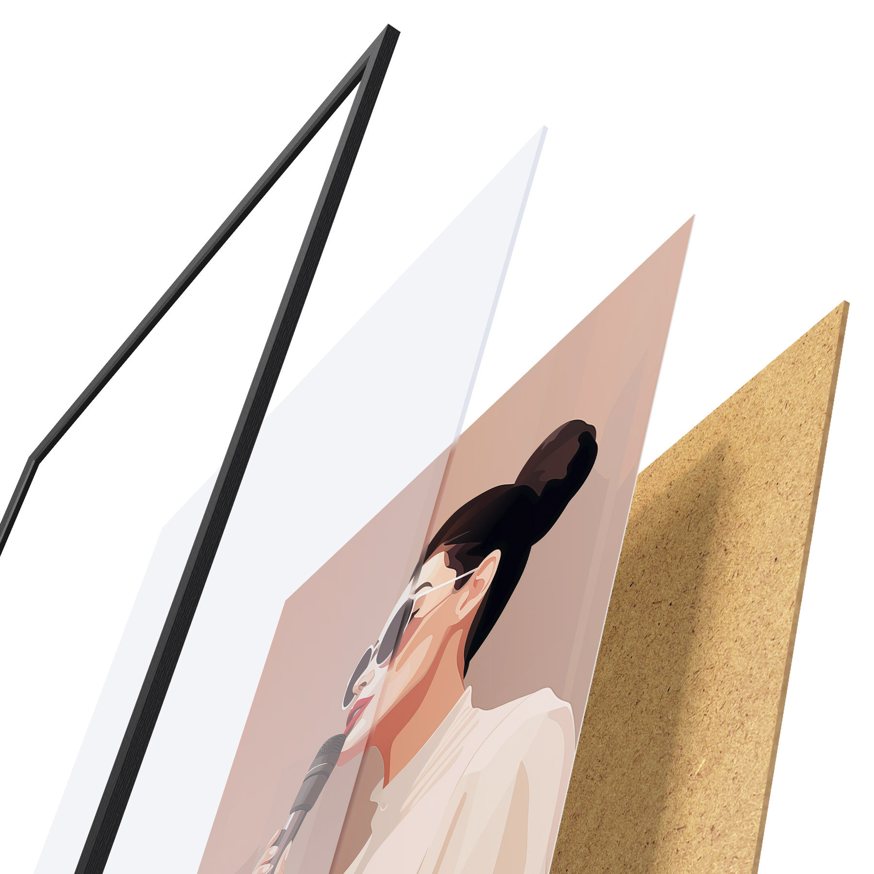 El póster consta de marco, plexiglás, imagen impresa y soporte de aglomerado. El póster puede colgarse inmediatamente en la pared gracias a los soportes de la parte posterior.