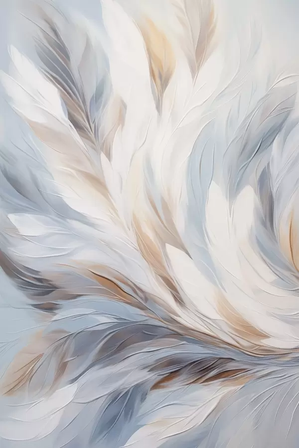 Poster Pintura abstracta de plumas en tonos blancos, azules y marrones, con una textura suave y fluida y un fondo claro. Nr f47417