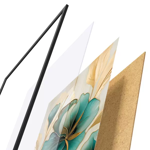 El póster consta de marco, plexiglás, imagen impresa y soporte de aglomerado. El póster puede colgarse inmediatamente en la pared gracias a los soportes de la parte posterior.