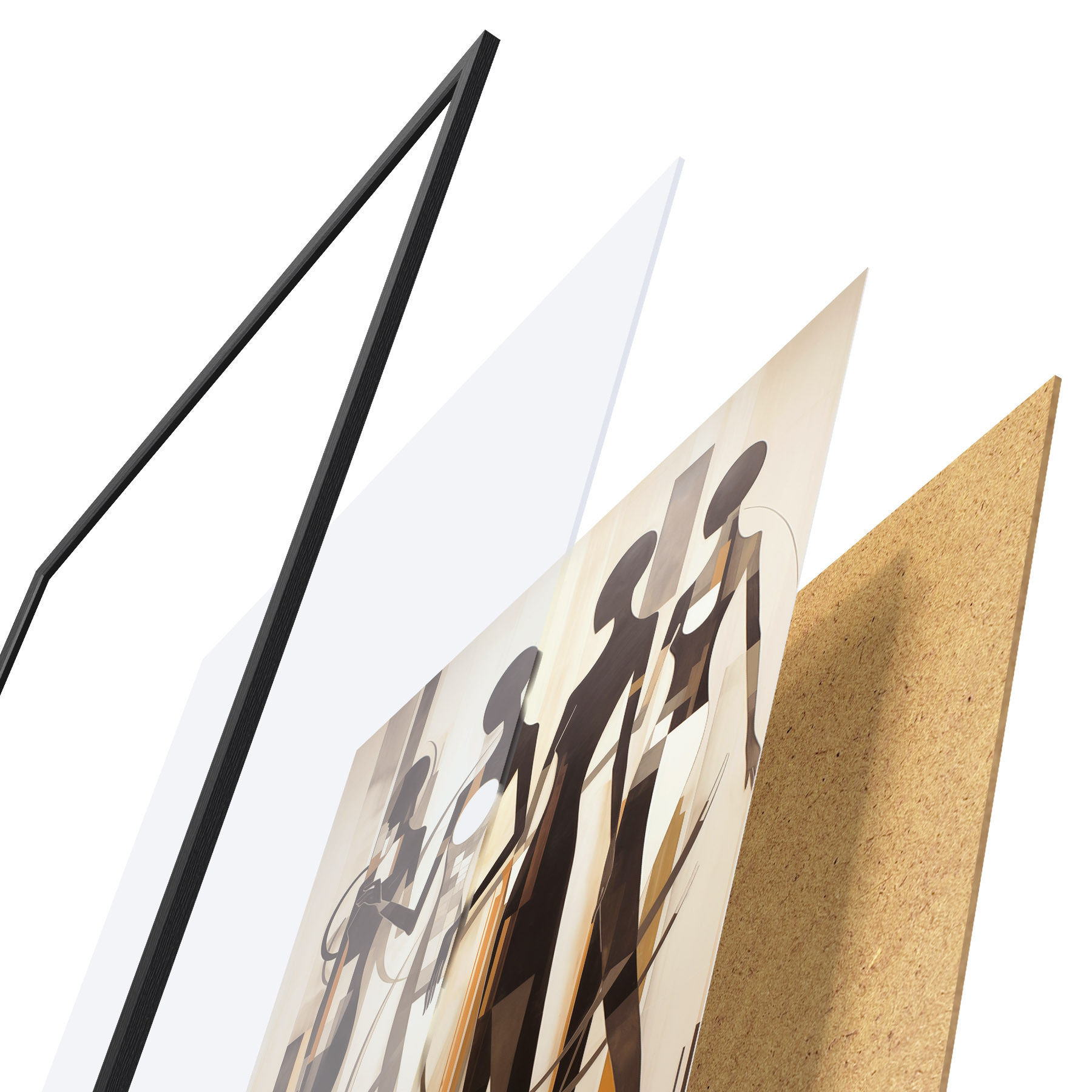 El póster consta de marco, plexiglás, imagen impresa y soporte de aglomerado. El póster puede colgarse inmediatamente en la pared gracias a los soportes de la parte posterior.
