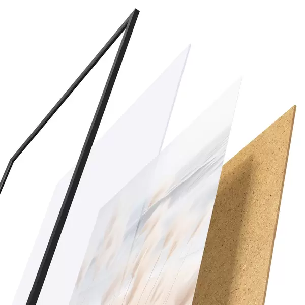 El póster consta de marco, plexiglás, imagen impresa y soporte de aglomerado. El póster puede colgarse inmediatamente en la pared gracias a los soportes de la parte posterior.