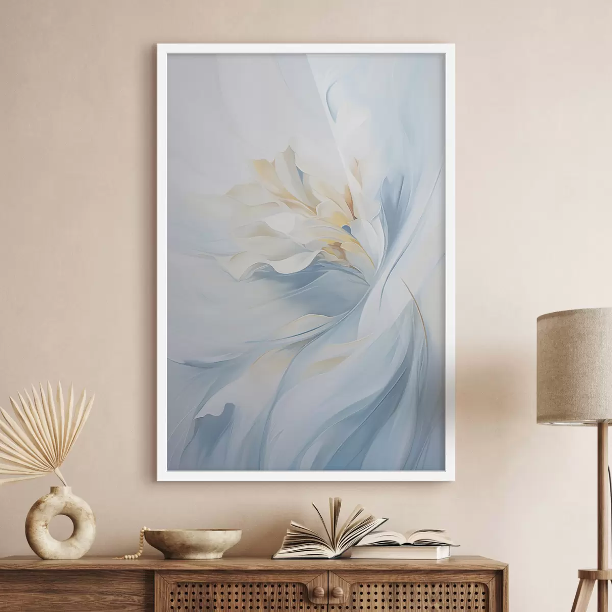 Poster Pétalos abstractos, delicados y translúcidos que se arremolinan hacia dentro con una iluminación suave y una textura pictórica. f47436