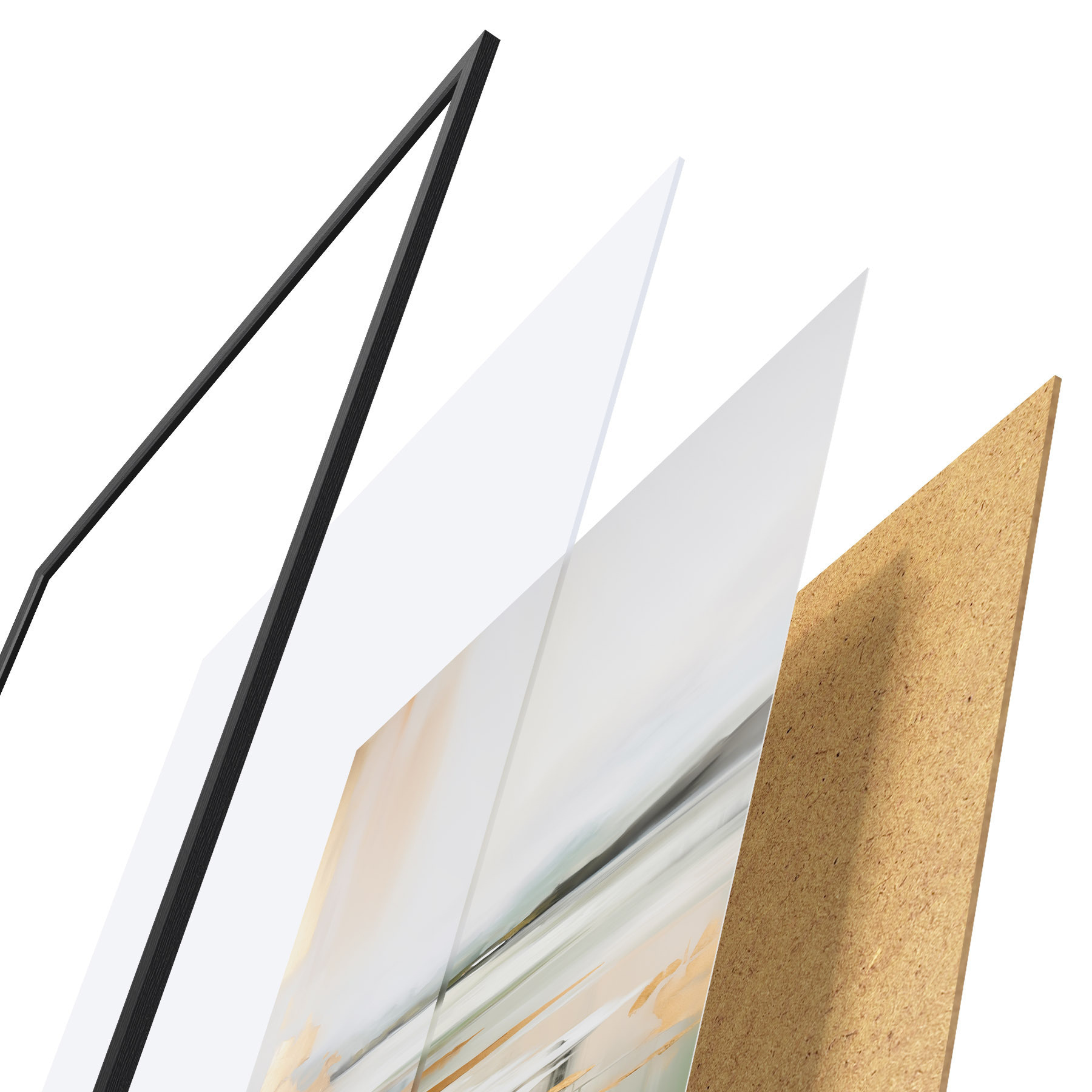 El póster consta de marco, plexiglás, imagen impresa y soporte de aglomerado. El póster puede colgarse inmediatamente en la pared gracias a los soportes de la parte posterior.