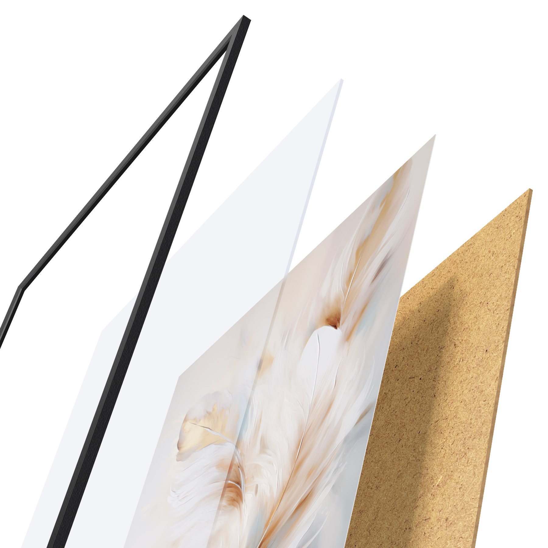 El póster consta de marco, plexiglás, imagen impresa y soporte de aglomerado. El póster puede colgarse inmediatamente en la pared gracias a los soportes de la parte posterior.