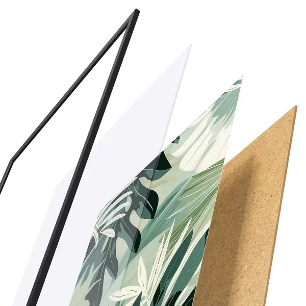 El póster consta de marco, plexiglás, imagen impresa y soporte de aglomerado. El póster puede colgarse inmediatamente en la pared gracias a los soportes de la parte posterior.
