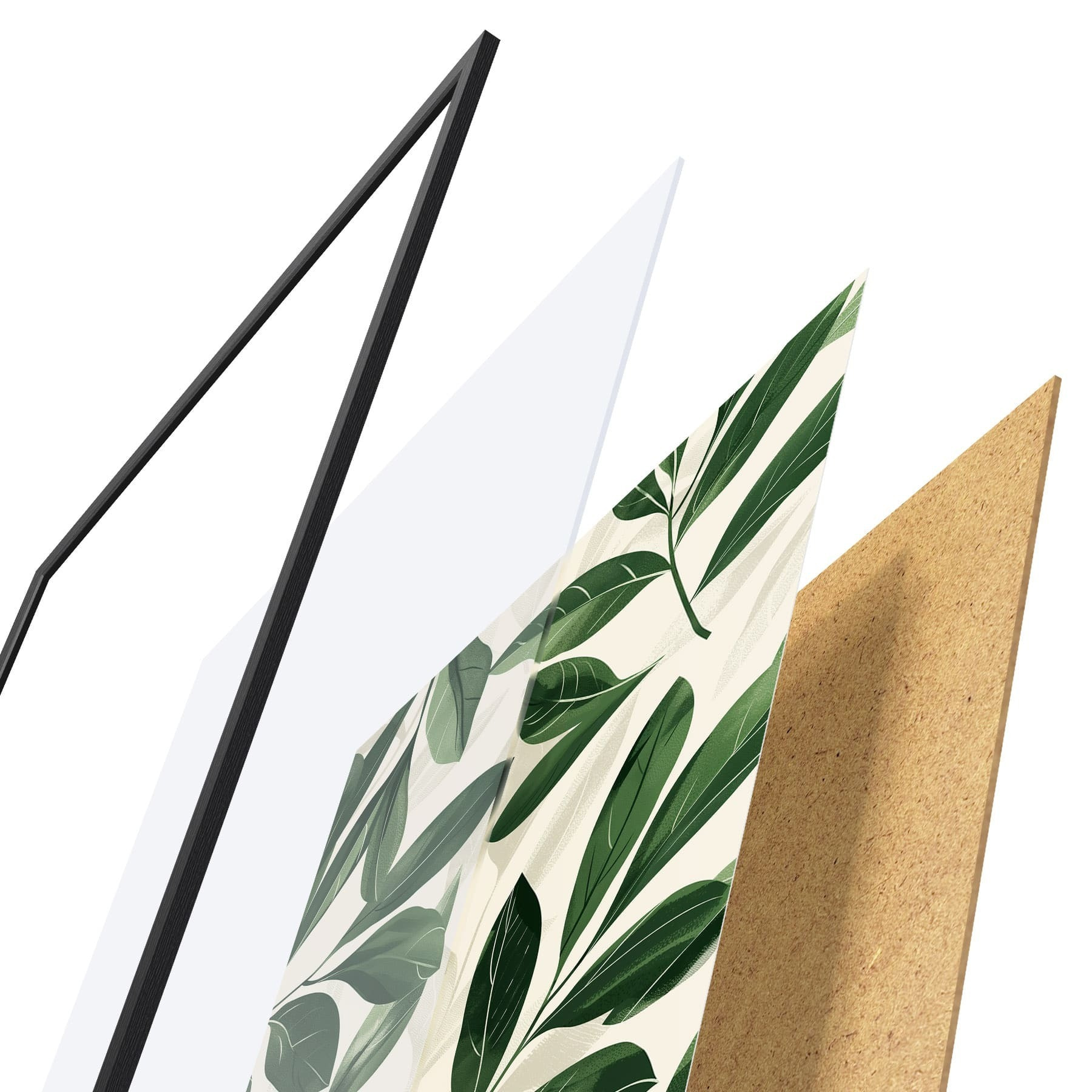 El póster consta de marco, plexiglás, imagen impresa y soporte de aglomerado. El póster puede colgarse inmediatamente en la pared gracias a los soportes de la parte posterior.