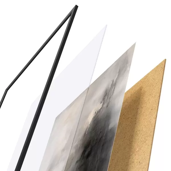 El póster consta de marco, plexiglás, imagen impresa y soporte de aglomerado. El póster puede colgarse inmediatamente en la pared gracias a los soportes de la parte posterior.