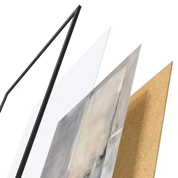 El póster consta de marco, plexiglás, imagen impresa y soporte de aglomerado. El póster puede colgarse inmediatamente en la pared gracias a los soportes de la parte posterior.