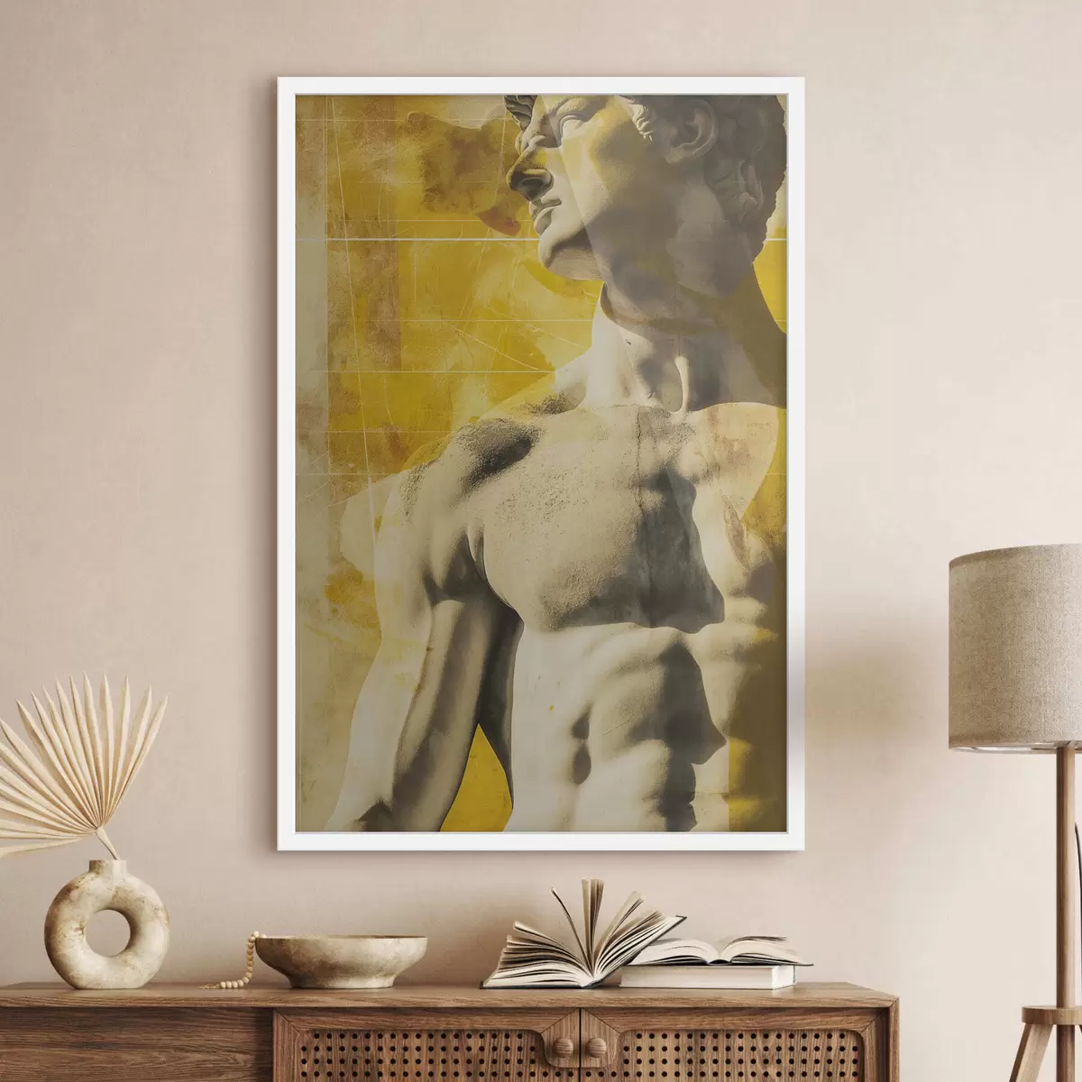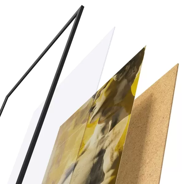 El póster consta de marco, plexiglás, imagen impresa y soporte de aglomerado. El póster puede colgarse inmediatamente en la pared gracias a los soportes de la parte posterior.