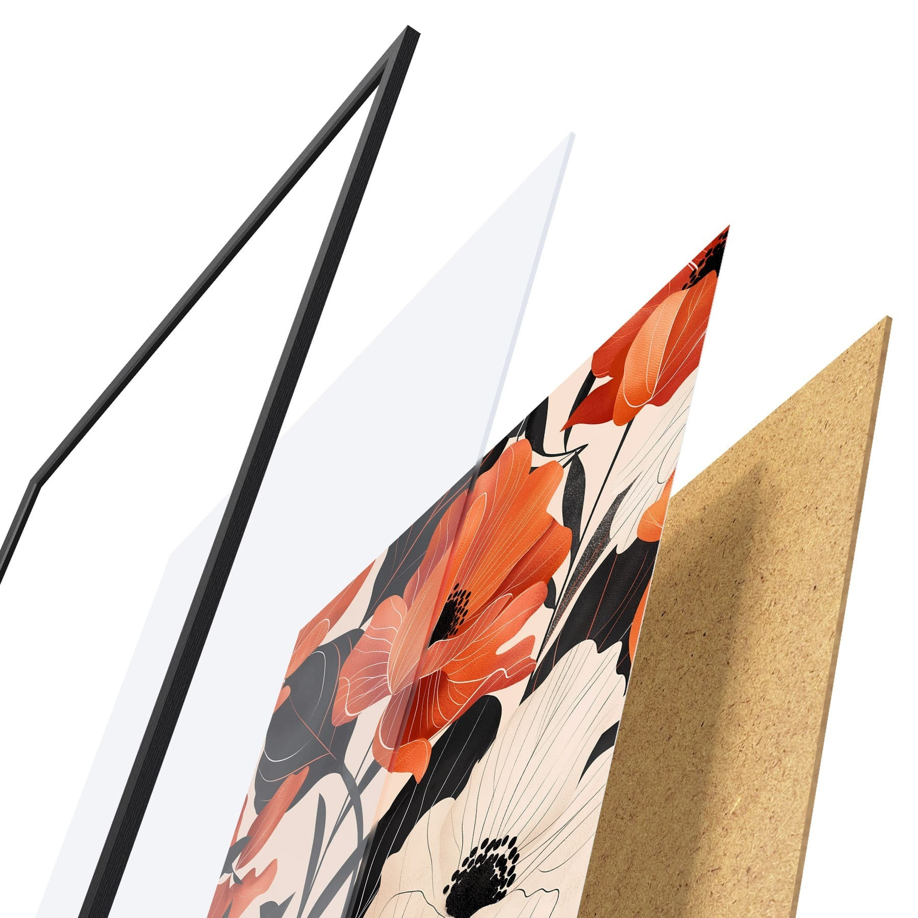 El póster consta de marco, plexiglás, imagen impresa y soporte de aglomerado. El póster puede colgarse inmediatamente en la pared gracias a los soportes de la parte posterior.