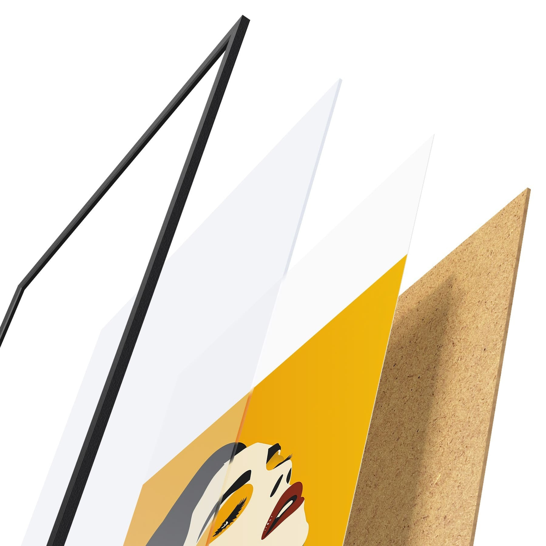 El póster consta de marco, plexiglás, imagen impresa y soporte de aglomerado. El póster puede colgarse inmediatamente en la pared gracias a los soportes de la parte posterior.