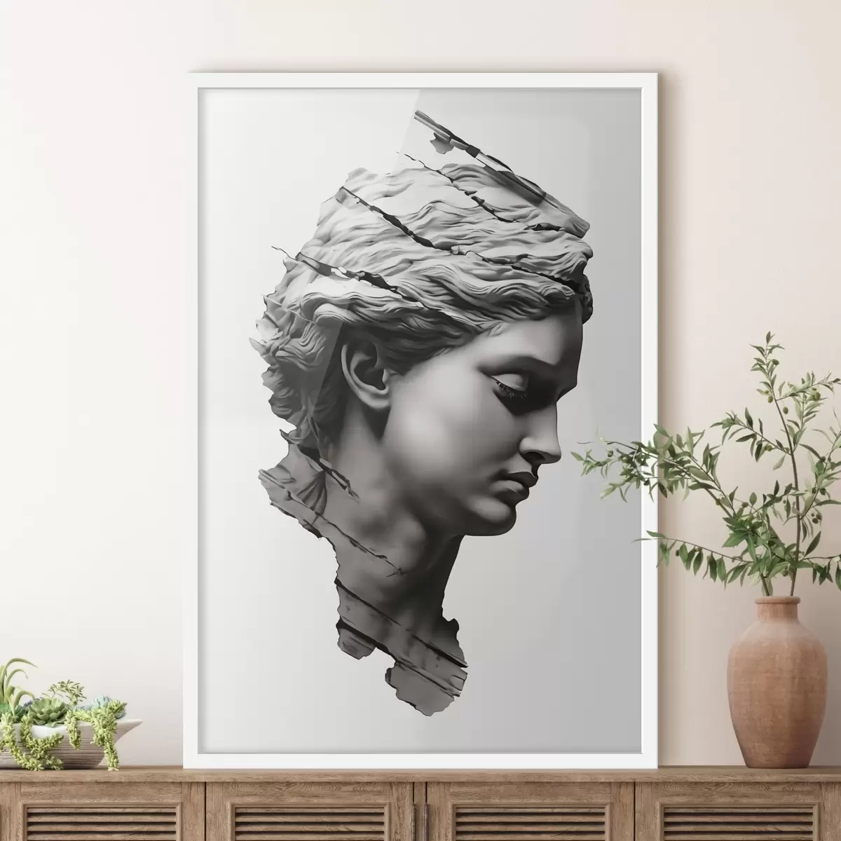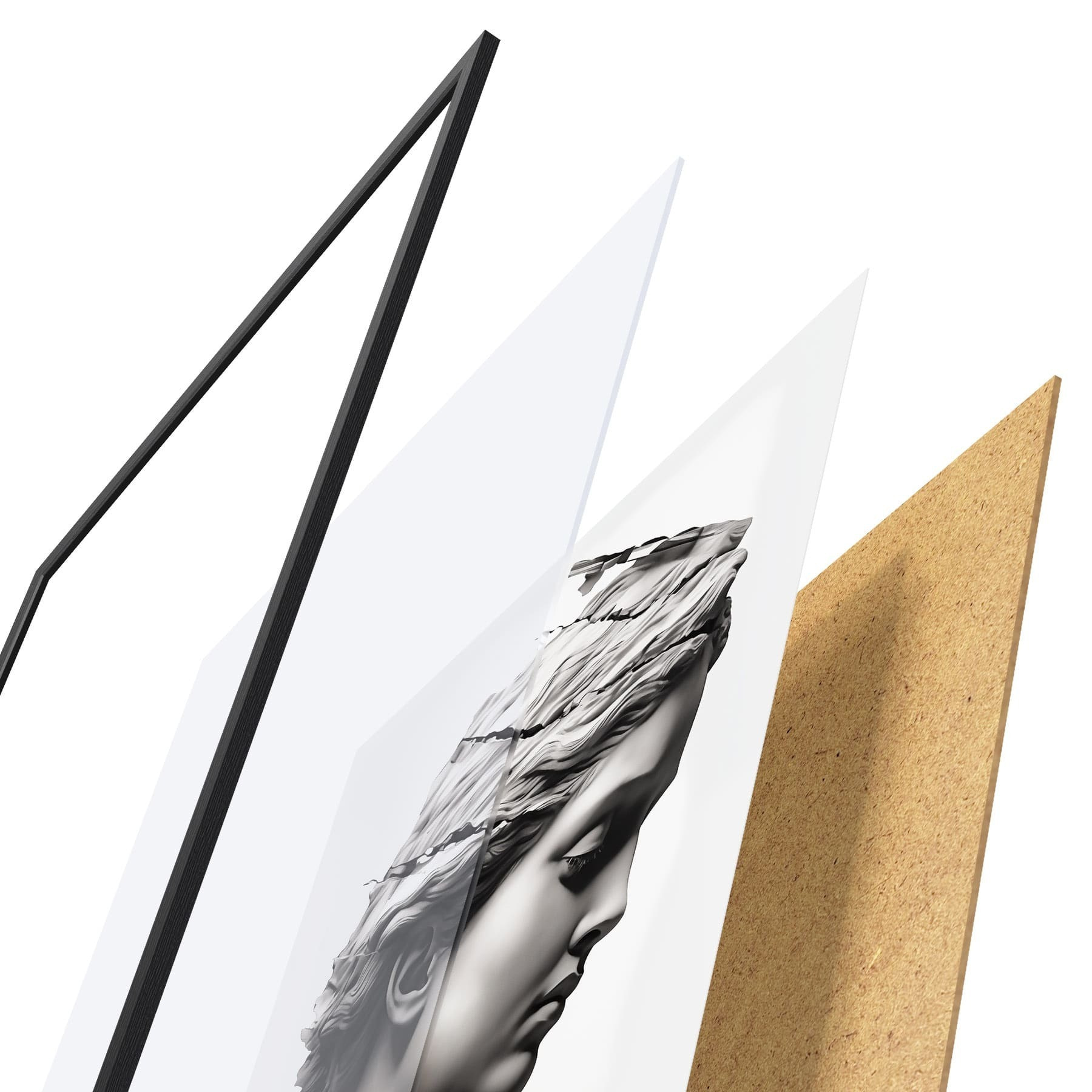 El póster consta de marco, plexiglás, imagen impresa y soporte de aglomerado. El póster puede colgarse inmediatamente en la pared gracias a los soportes de la parte posterior.