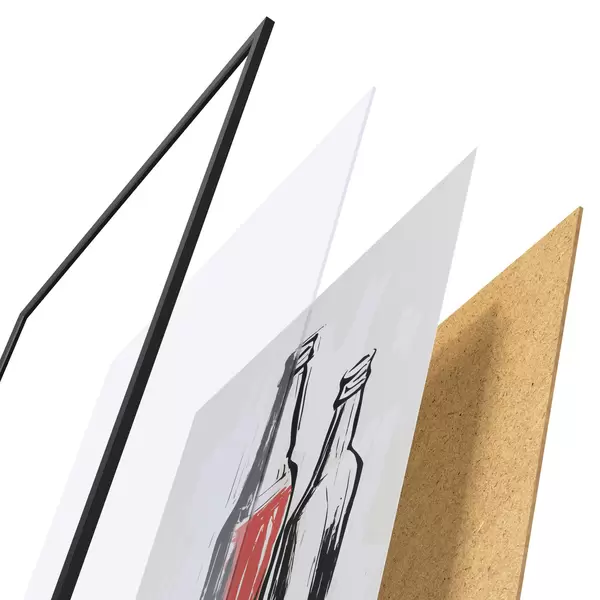 El póster consta de marco, plexiglás, imagen impresa y soporte de aglomerado. El póster puede colgarse inmediatamente en la pared gracias a los soportes de la parte posterior.