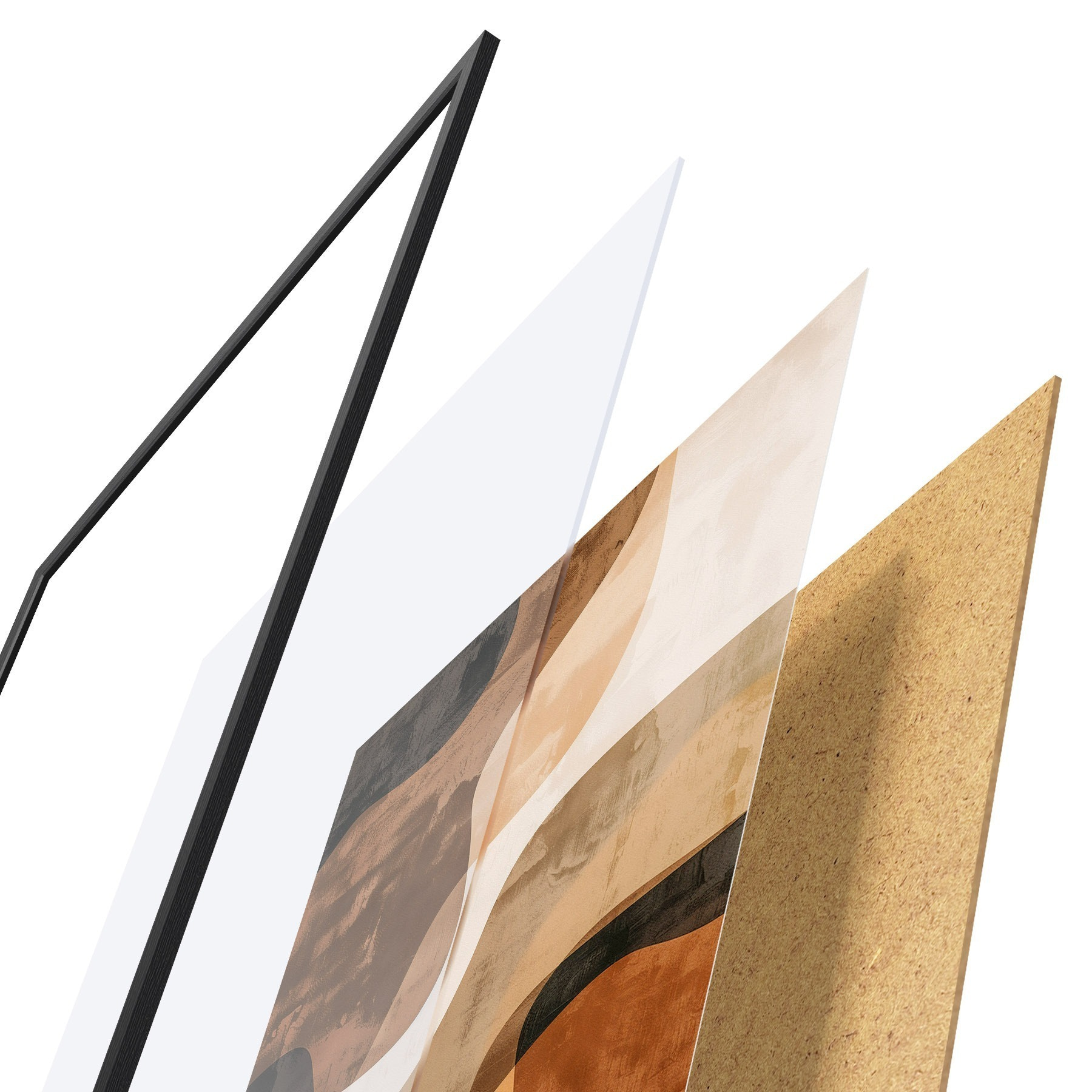 El póster consta de marco, plexiglás, imagen impresa y soporte de aglomerado. El póster puede colgarse inmediatamente en la pared gracias a los soportes de la parte posterior.