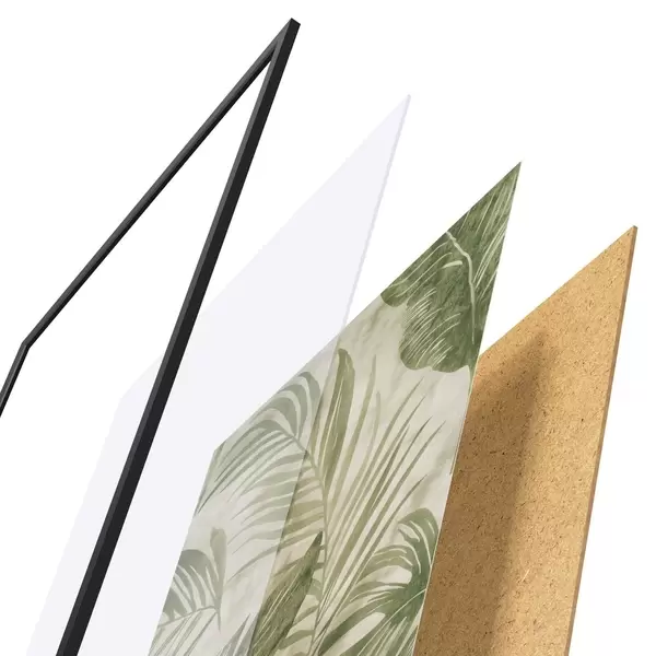 El póster consta de marco, plexiglás, imagen impresa y soporte de aglomerado. El póster puede colgarse inmediatamente en la pared gracias a los soportes de la parte posterior.