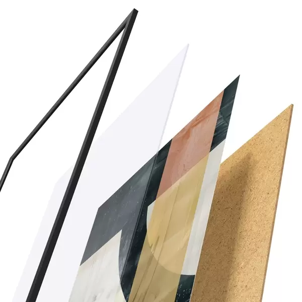 El póster consta de marco, plexiglás, imagen impresa y soporte de aglomerado. El póster puede colgarse inmediatamente en la pared gracias a los soportes de la parte posterior.