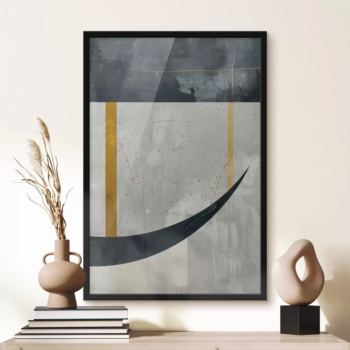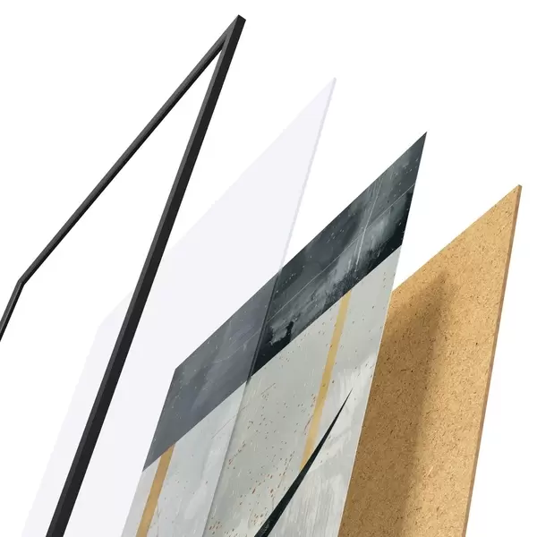 El póster consta de marco, plexiglás, imagen impresa y soporte de aglomerado. El póster puede colgarse inmediatamente en la pared gracias a los soportes de la parte posterior.