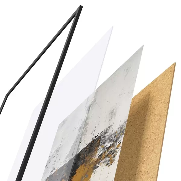 El póster consta de marco, plexiglás, imagen impresa y soporte de aglomerado. El póster puede colgarse inmediatamente en la pared gracias a los soportes de la parte posterior.