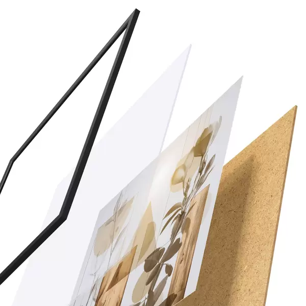 El póster consta de marco, plexiglás, imagen impresa y soporte de aglomerado. El póster puede colgarse inmediatamente en la pared gracias a los soportes de la parte posterior.