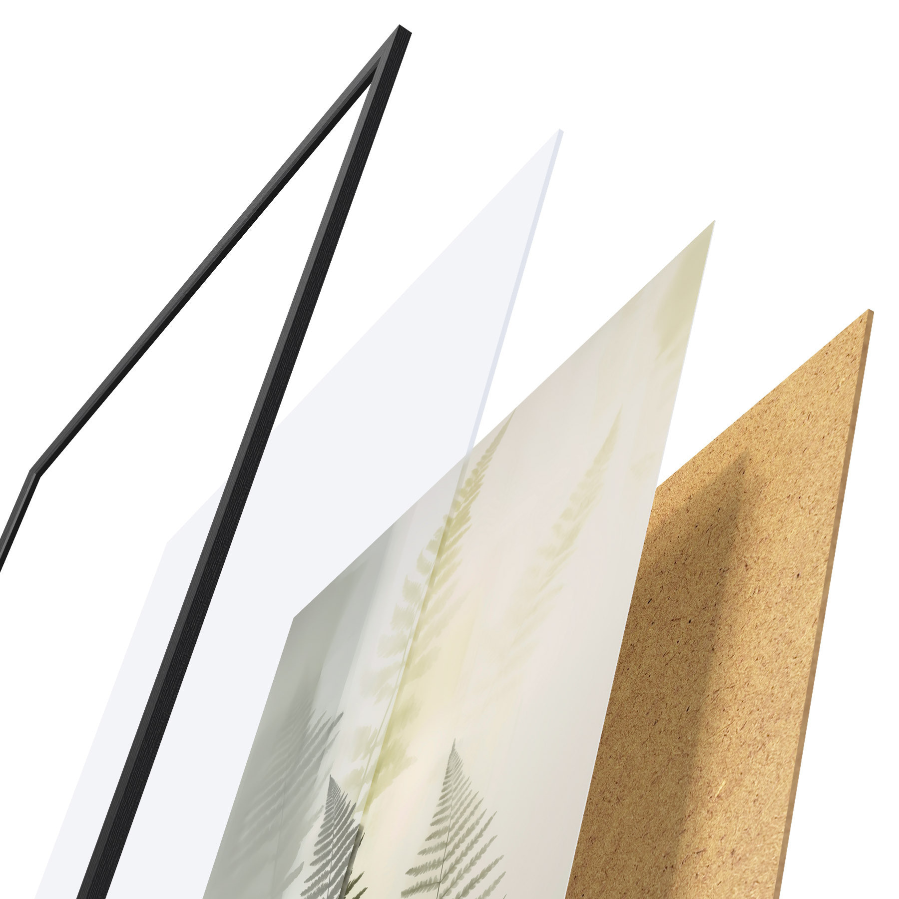 El póster consta de marco, plexiglás, imagen impresa y soporte de aglomerado. El póster puede colgarse inmediatamente en la pared gracias a los soportes de la parte posterior.