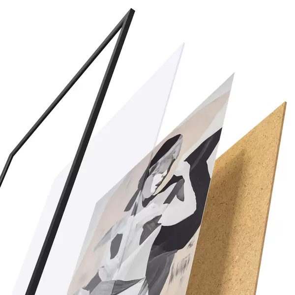 El póster consta de marco, plexiglás, imagen impresa y soporte de aglomerado. El póster puede colgarse inmediatamente en la pared gracias a los soportes de la parte posterior.