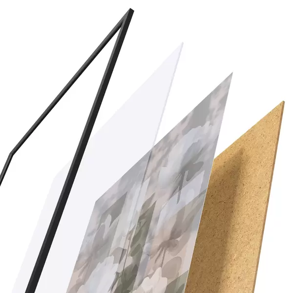 El póster consta de marco, plexiglás, imagen impresa y soporte de aglomerado. El póster puede colgarse inmediatamente en la pared gracias a los soportes de la parte posterior.