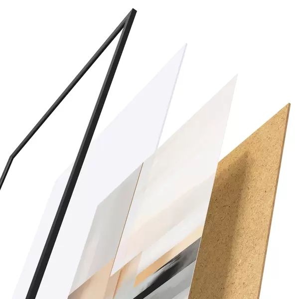 El póster consta de marco, plexiglás, imagen impresa y soporte de aglomerado. El póster puede colgarse inmediatamente en la pared gracias a los soportes de la parte posterior.
