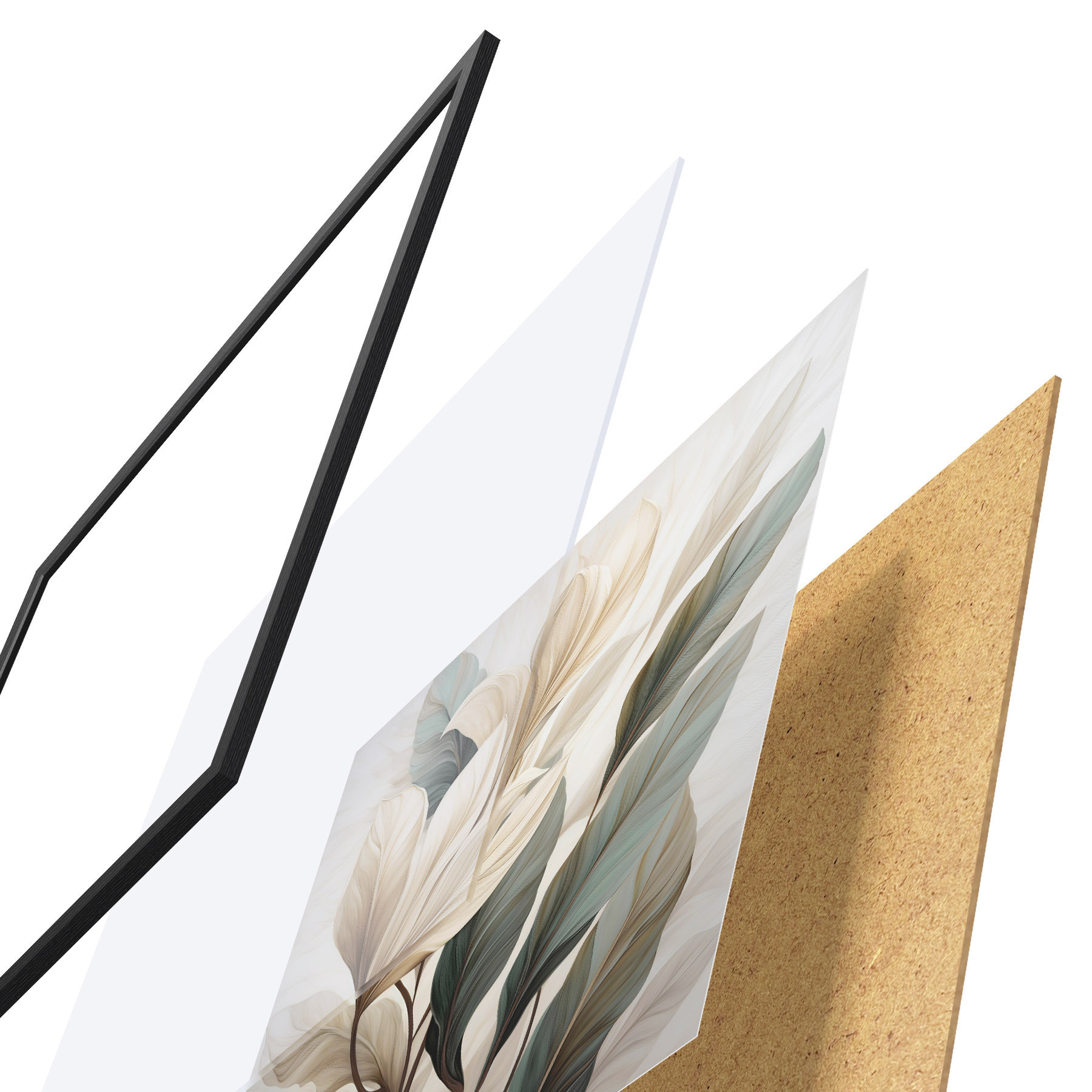 El póster consta de marco, plexiglás, imagen impresa y soporte de aglomerado. El póster puede colgarse inmediatamente en la pared gracias a los soportes de la parte posterior.