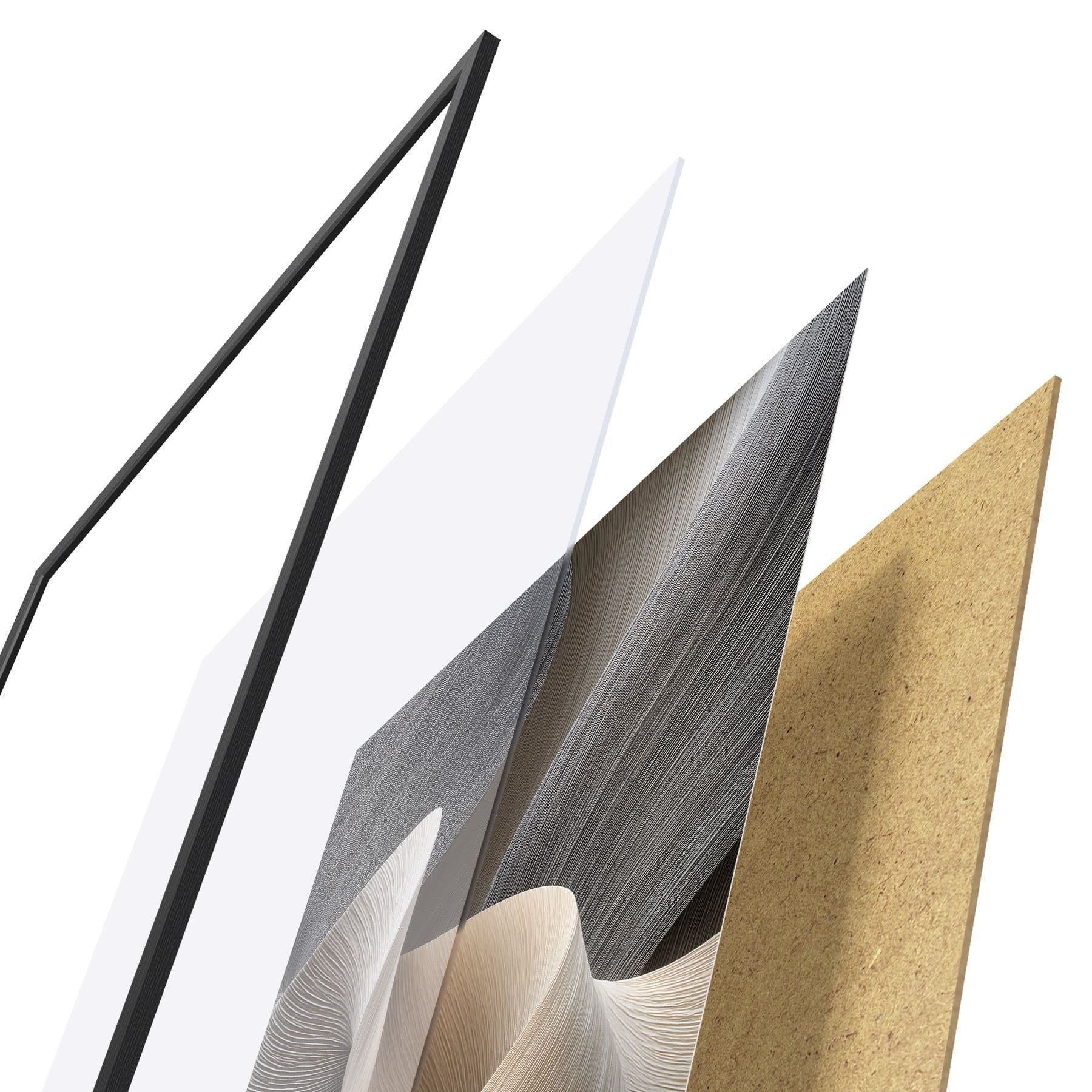 El póster consta de marco, plexiglás, imagen impresa y soporte de aglomerado. El póster puede colgarse inmediatamente en la pared gracias a los soportes de la parte posterior.