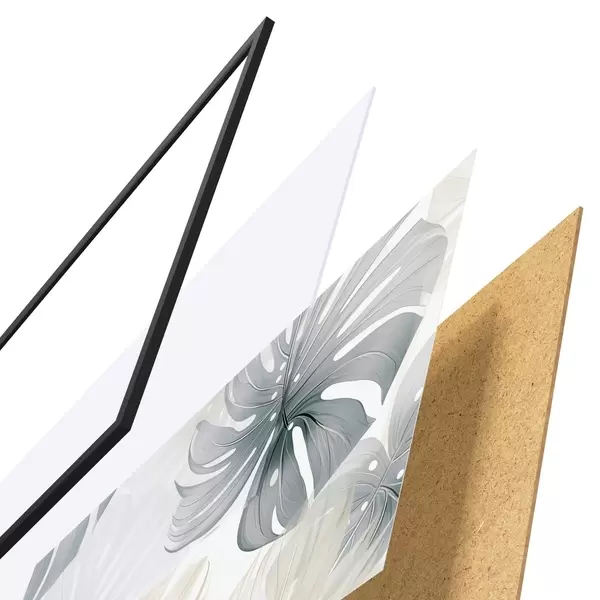 El póster consta de marco, plexiglás, imagen impresa y soporte de aglomerado. El póster puede colgarse inmediatamente en la pared gracias a los soportes de la parte posterior.