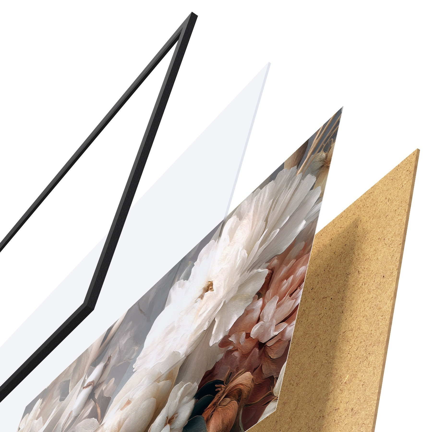 El póster consta de marco, plexiglás, imagen impresa y soporte de aglomerado. El póster puede colgarse inmediatamente en la pared gracias a los soportes de la parte posterior.