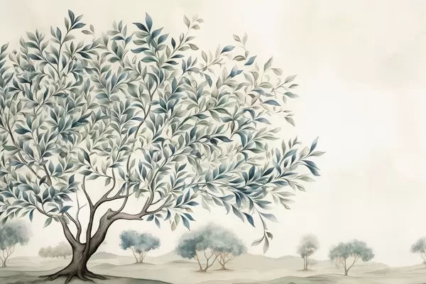 Poster Árbol en un campo, pintura en acuarela Nr f47705