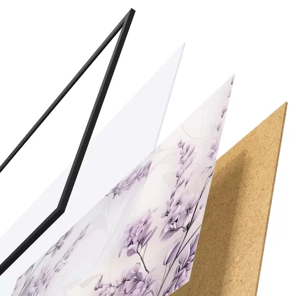 El póster consta de marco, plexiglás, imagen impresa y soporte de aglomerado. El póster puede colgarse inmediatamente en la pared gracias a los soportes de la parte posterior.