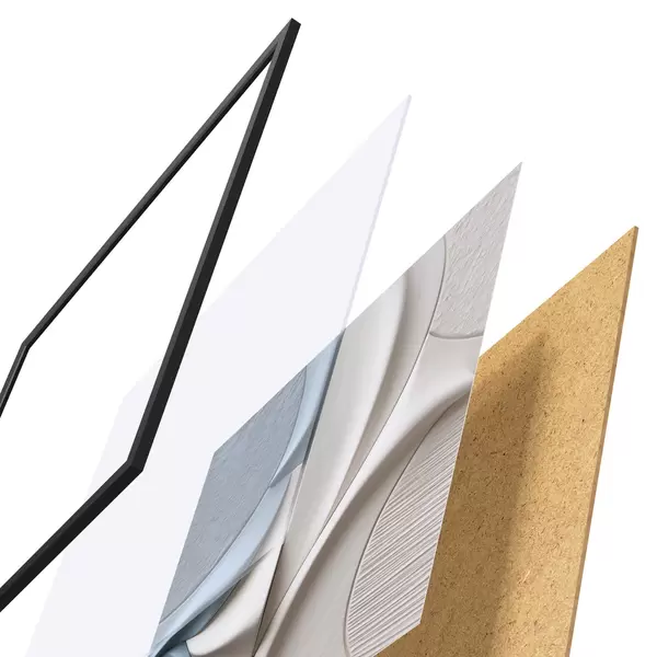 El póster consta de marco, plexiglás, imagen impresa y soporte de aglomerado. El póster puede colgarse inmediatamente en la pared gracias a los soportes de la parte posterior.