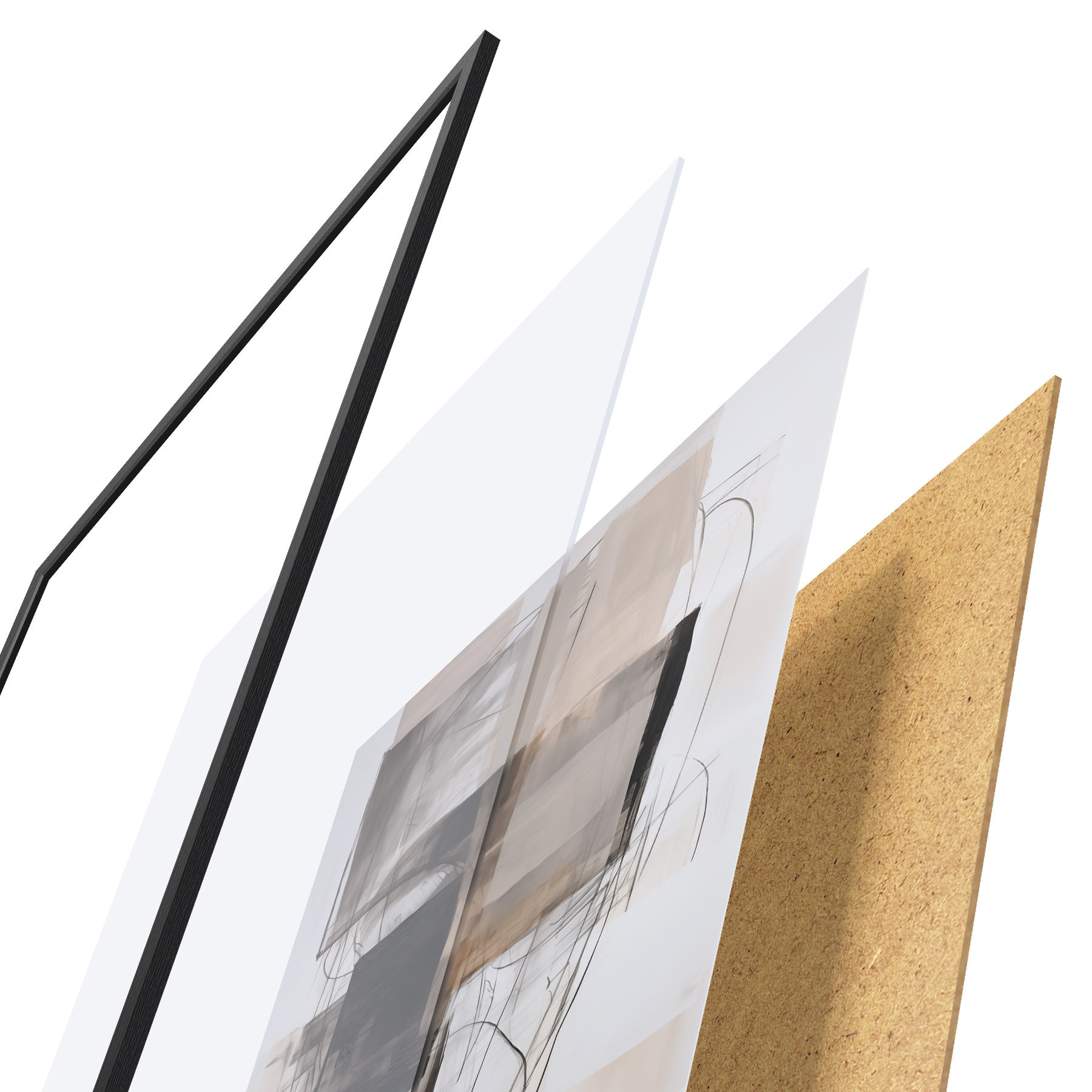 El póster consta de marco, plexiglás, imagen impresa y soporte de aglomerado. El póster puede colgarse inmediatamente en la pared gracias a los soportes de la parte posterior.