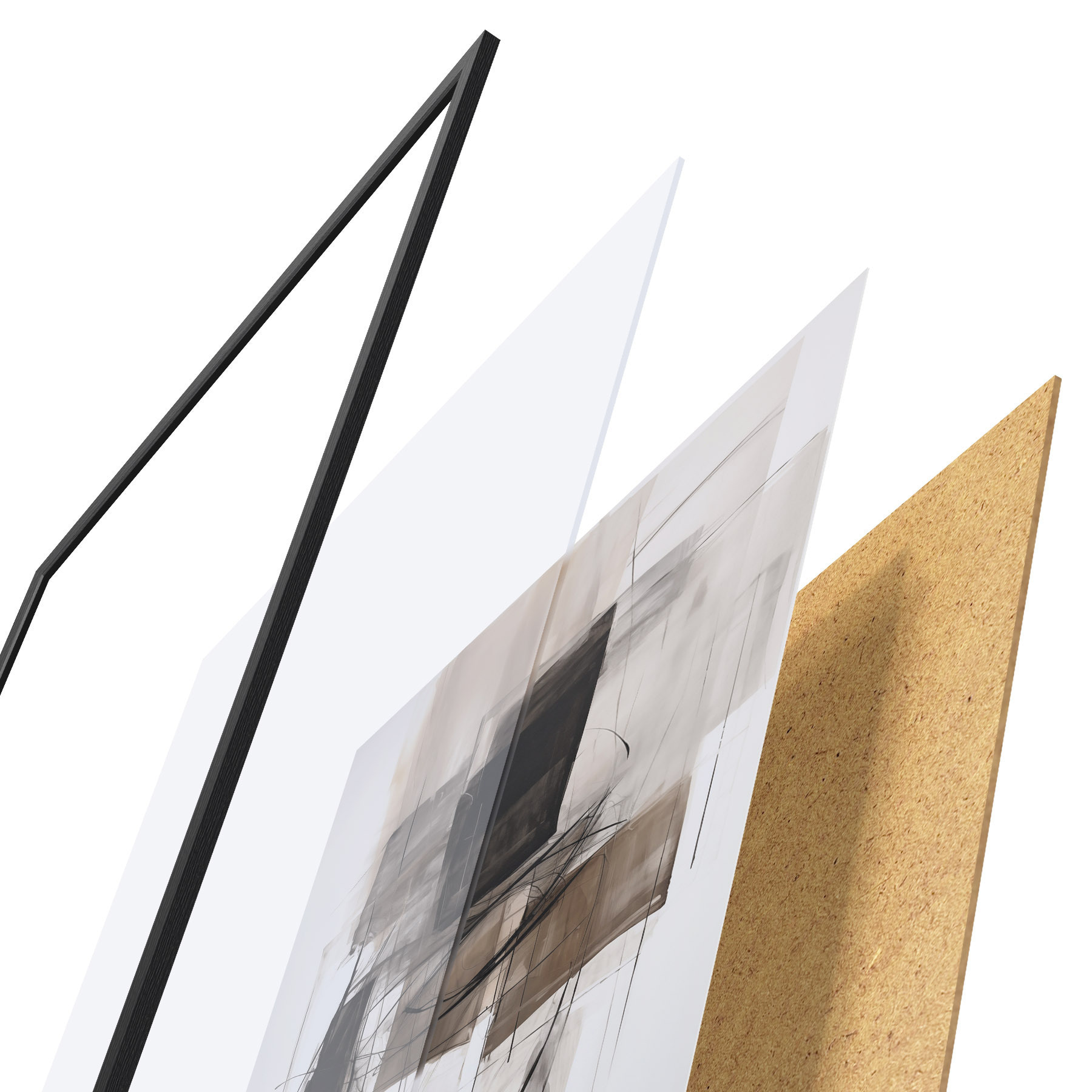 El póster consta de marco, plexiglás, imagen impresa y soporte de aglomerado. El póster puede colgarse inmediatamente en la pared gracias a los soportes de la parte posterior.